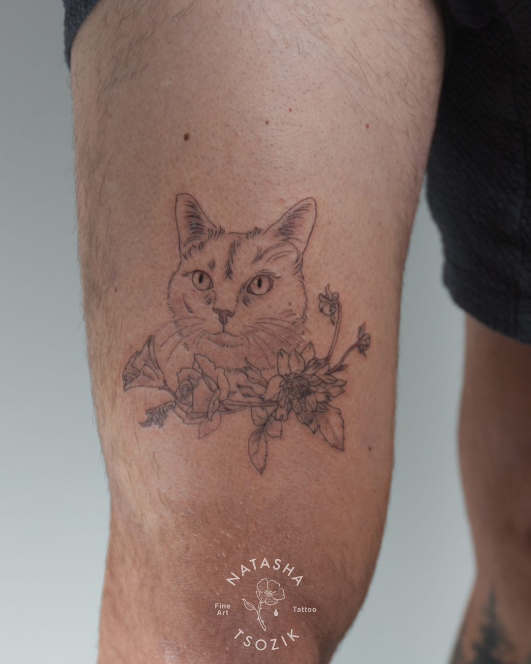 A simple fine line tattoo with a little bit of shading becomes a celebration of the exceptional bond between a client and their dog/cat, or even an eland. Besides being a popular tattoo choice, it is also an expression of love.