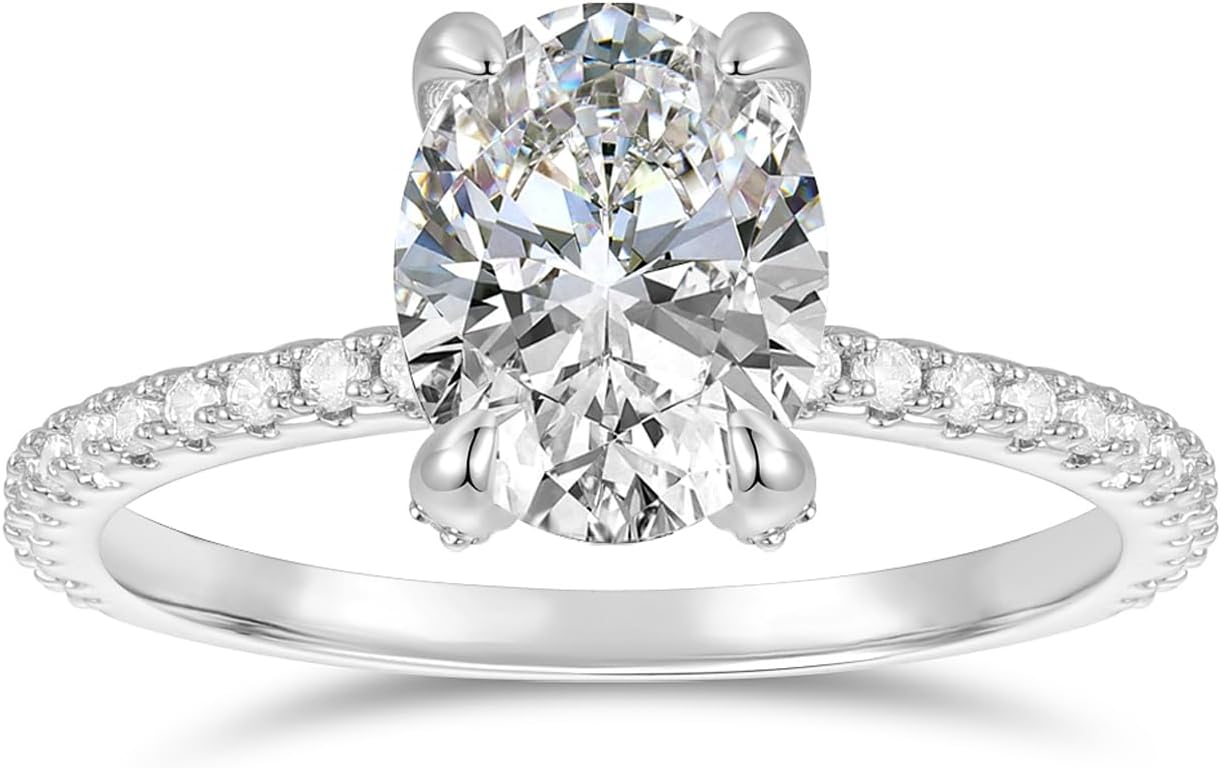14K Gold Moissanite Ring 14k Gold 2 Carat D Color Hidden Halo Oval Cut Moissanite Engagement Rings for Women